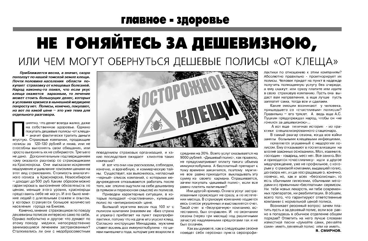 Лечения не будет! Статья в "Вечернем Томске" о дешевых полисах.